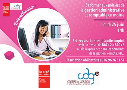 Le Centre de Gestion des Côtes d’Armor et la Cité des Métiers organisent une information collective en visioconférence pour vous permettre de découvrir la formation "Métiers Administratifs Territoriaux" (MAT) (30 minutes de présentation et 15 minutes de questions).