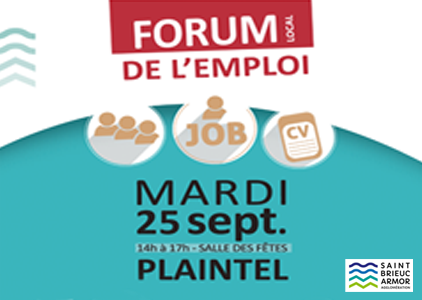 Vous êtes chercheurs d'emploi, salariés en réflexion sur votre parcours professionnel, jeunes ou adultes, vous souhaitez avoir des informations sur l'emploi ? Rendez-vous le mardi 25 septembre de 14h à 17h à la salle des fêtes de Plaintel.