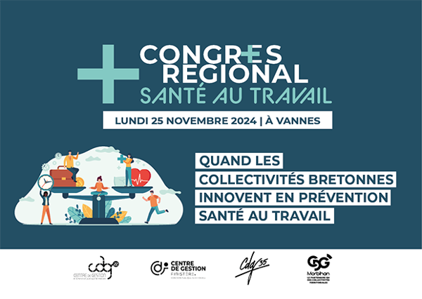 Les 4 Centres de Gestion bretons vous invitent à la 1ère édition du congrès régional dédié à la santé au travail : "Quand les collectivités bretonnes innovent en Prévention et Santé au Travail" qui aura lieu à Vannes lundi 25 novembre 2024 de 9h à 17h.